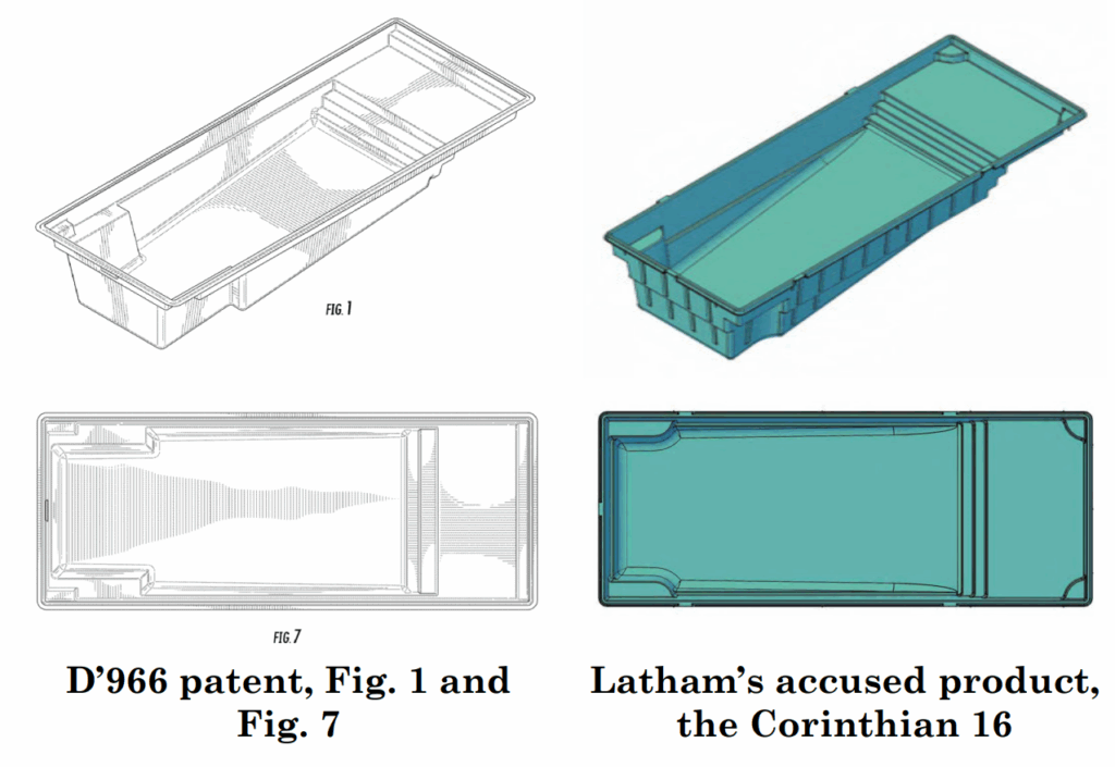 Judge Moore expressed concerns that this finding is representative of a much broader trend, citing the example of the Federal Circuit’s 2025 decision in North Star Tech. v. Latham. In North Star, as in the present case, the Federal Circuit affirmed a grant of summary judgment of noninfringement. In North Star, the Federal Circuit held that the claimed and accused pool designs (shown below) are “plainly dissimilar” as a matter of law.